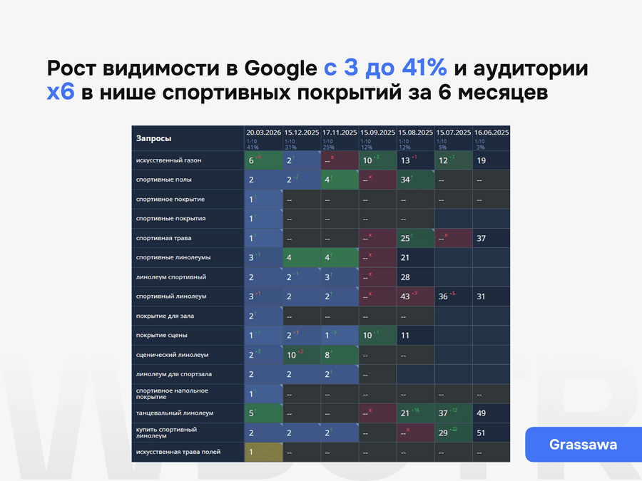 Кейс Grassawa: х6 рост трафика в Google и х4.5 увеличение конверсий