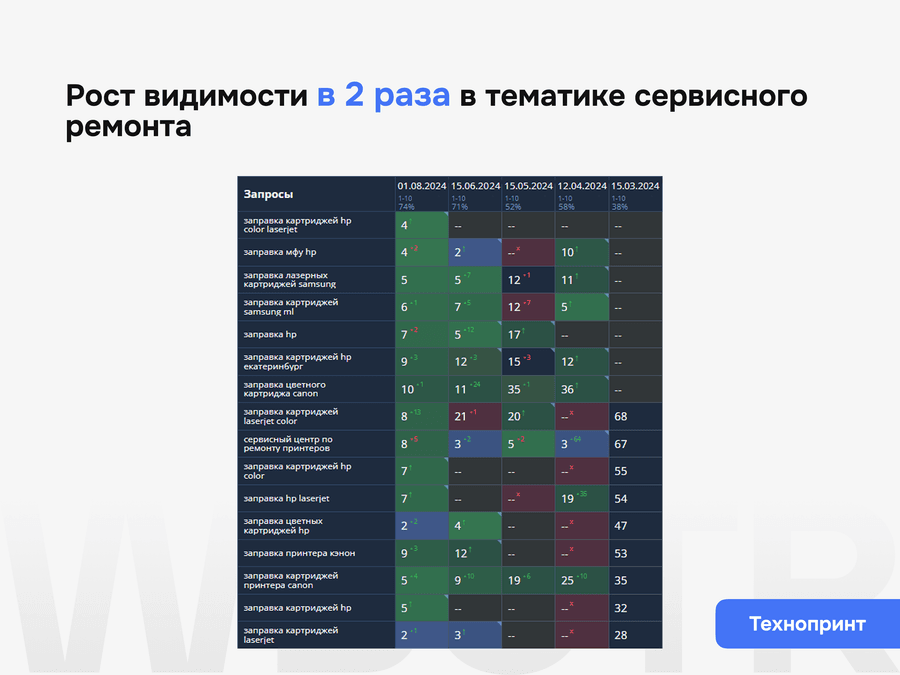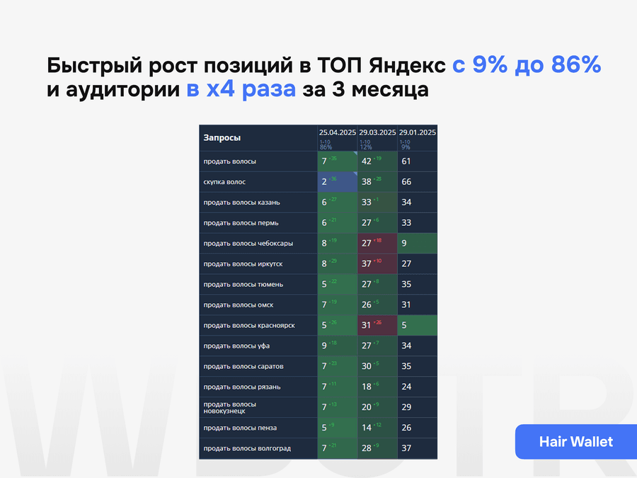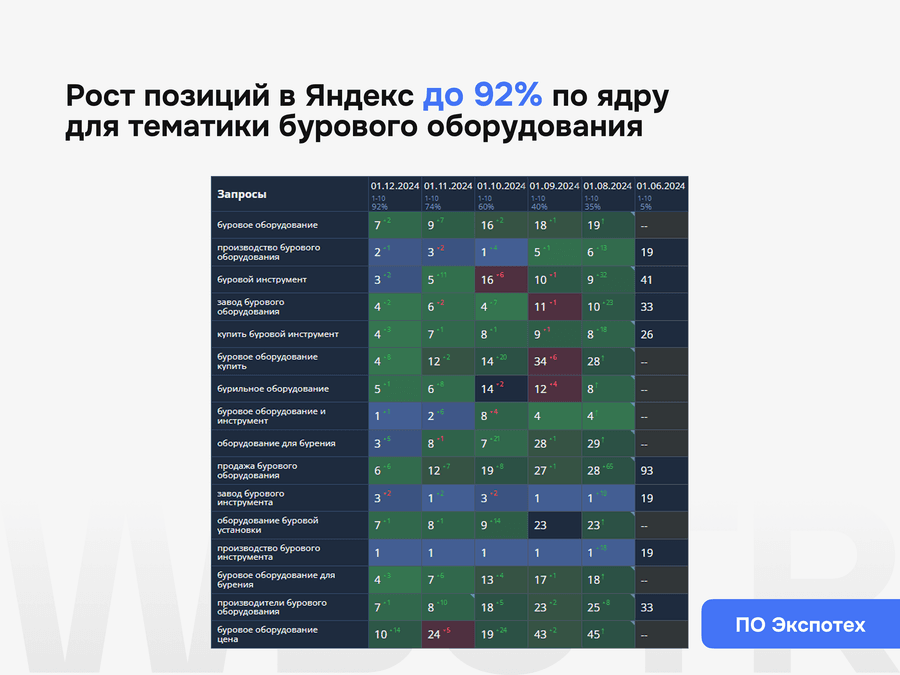 За счёт новых страниц сайт начинает собирать больше запросов, больше сценариев поиска и больше входов из органики. Это даёт рост не по одной группе ключей, а по всей карте спроса, которая раньше была частично или полностью неохвачена.